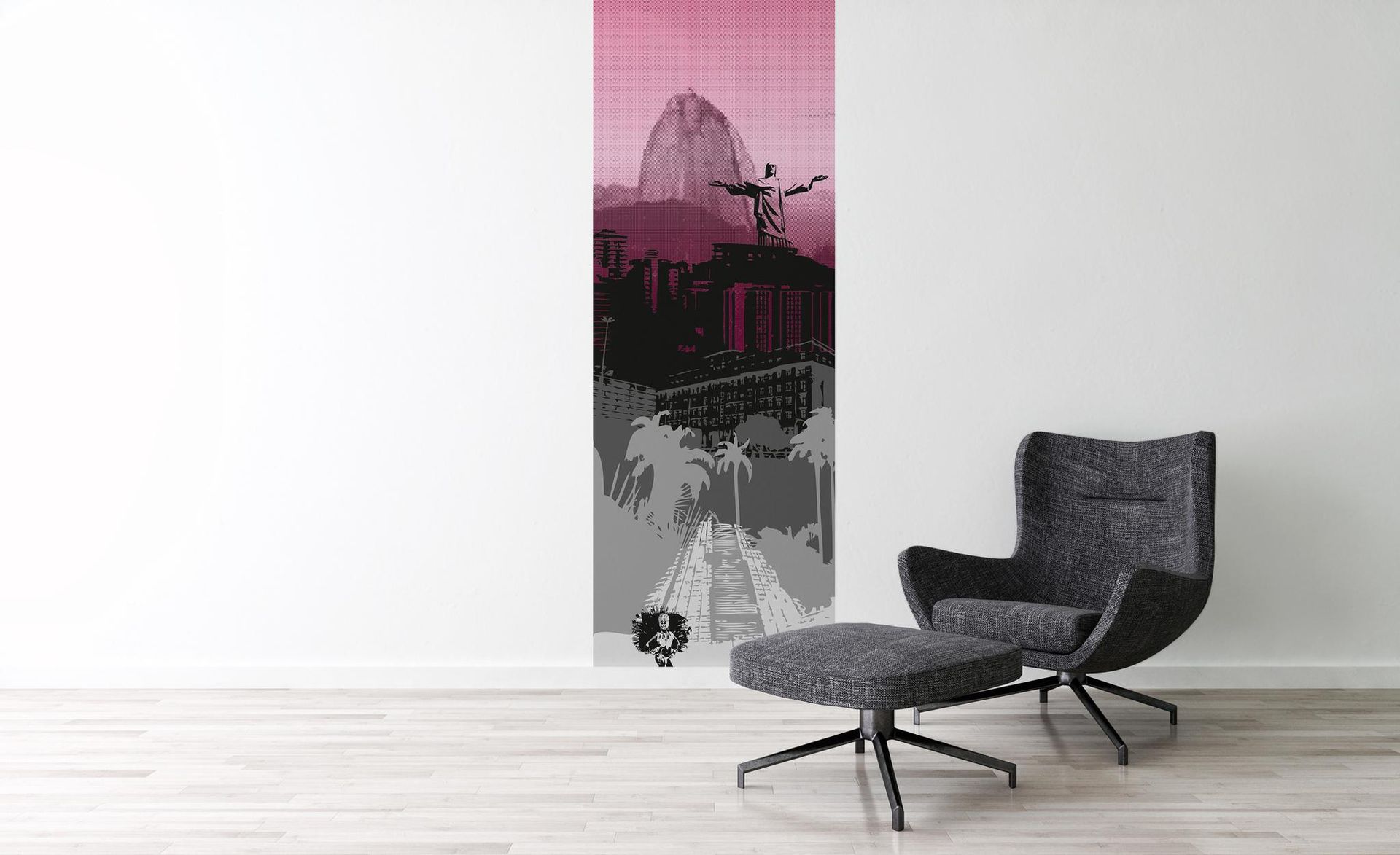 Diese auffällige Fototapete von A.S. Création aus der Kollektion XXL 5 präsentiert eine Pop-Art-inspirierte Darstellung einer Stadtlandschaft und der Cristo Redentor Statue aus dem Süden von Rio de Janeiro. Die Kombination aus lebhaftem Rosa und tiefem Schwarz mit grauen Akzenten erzeugt ein kühnes und modernes Flair, ideal für ein zeitgenössisches Interieurdesign. Das Primärmotiv der Statue verleiht jedem Raum eine künstlerische Note, während die urbane Silhouette im Sekundärmotiv Tiefe und Dimension hinzufügt.