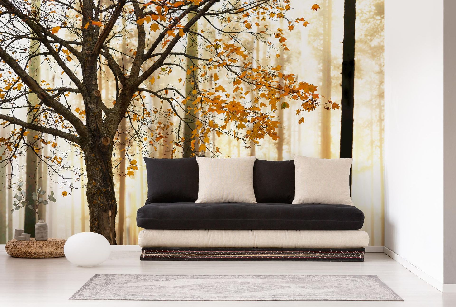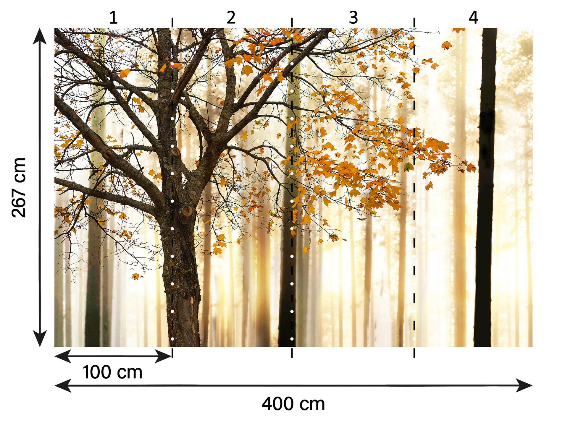 Diese hochwertige Fototapete von A.S. Création aus der Kollektion XXL 5 entführt Sie in einen zauberhaften Wald, durchflutet von goldenem Sonnenlicht. Das fotorealistische Design zeichnet sich durch warme Herbsttöne, goldbraune Blätter und lebendiges Grün aus, das jedem Raum eine entspannte und natürliche Atmosphäre verleiht. Die detailreiche Darstellung der Bäume und das Spiel des Lichts im Hintergrund schaffen eine beeindruckende Tiefenwirkung. Diese Tapete ist eine ideale Wahl, um einen beruhigenden Rückzugsort zu schaffen oder einem städtischen Raum eine natürliche Note zu verleihen.