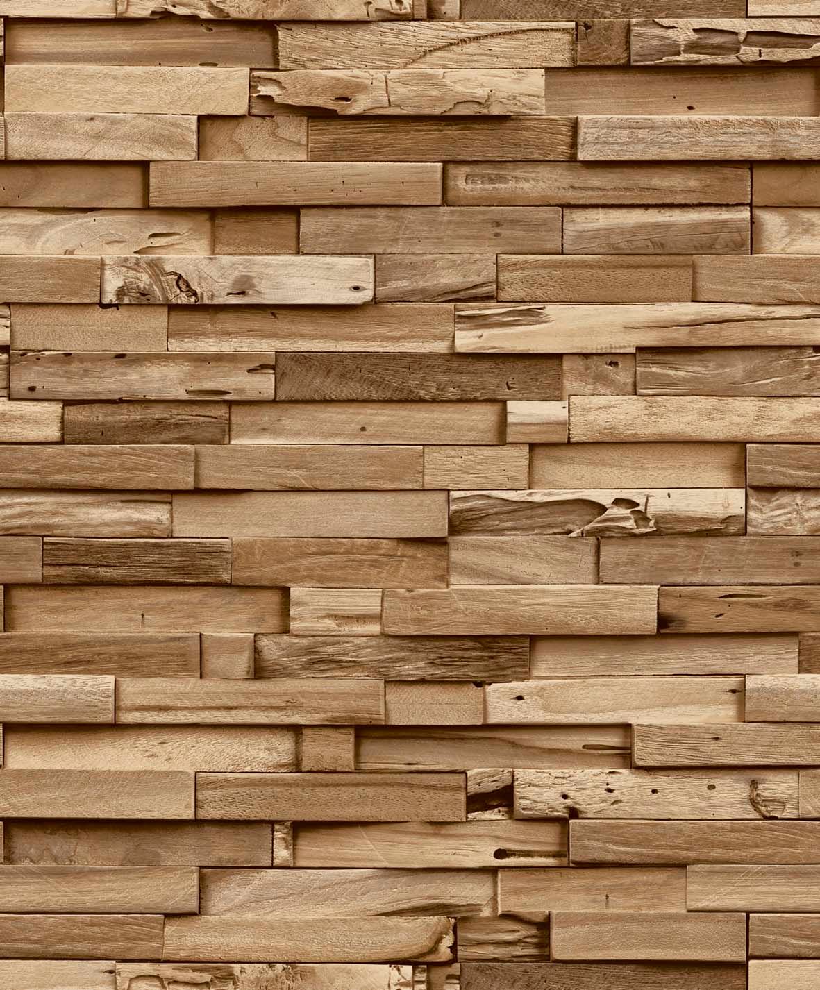 Grandeco 3D-Holzoptik-Tapete beige A64001