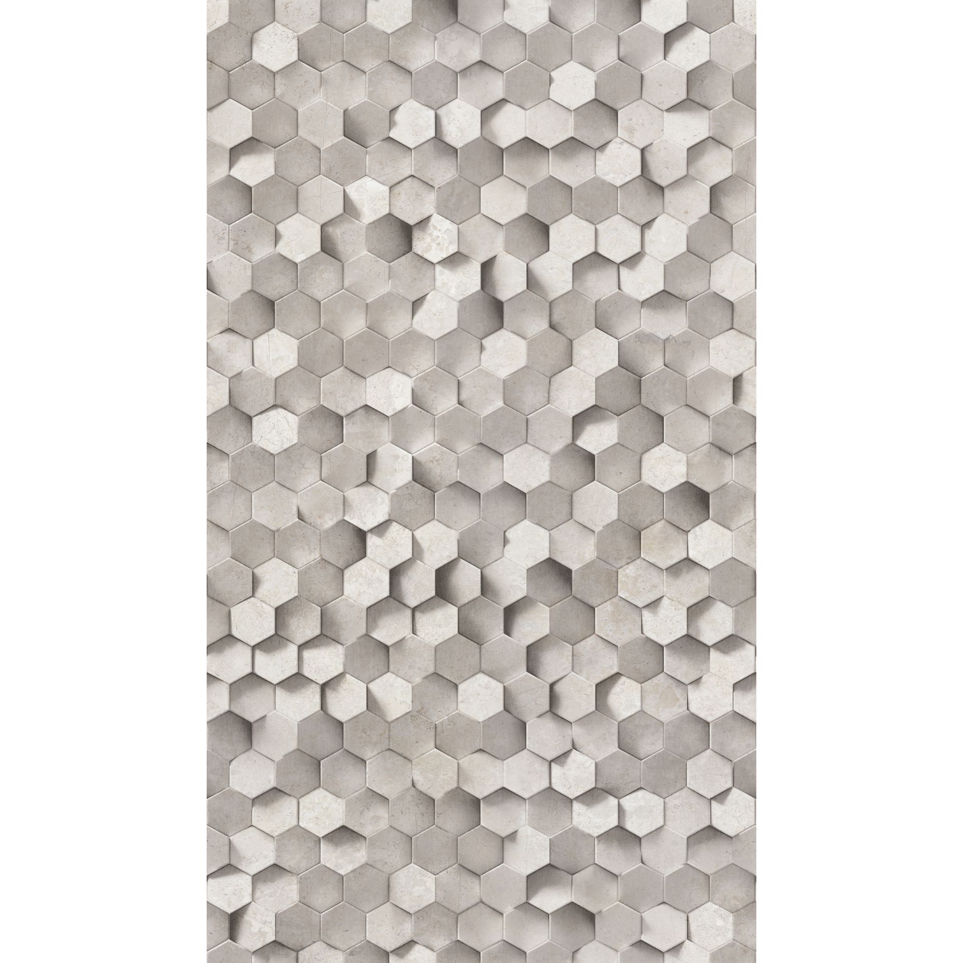 Diese moderne Tapete besticht durch ein geometrisches Hexagon-Muster, das durch subtile Schattierungen zwischen Beige- und Grautönen eine überzeugende 3D-Wirkung erzeugt. Die sechseckigen Elemente verleihen der Oberfläche Tiefe und Struktur, ohne aufdringlich zu wirken. Das durchgehend wiederholte Muster schafft eine ruhige, aber visuell interessante Wandgestaltung.