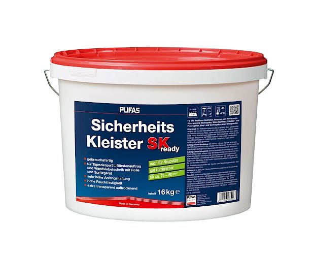 Der PUFAS Sicherheits-Kleister SK ready ist ein hochwertiger, gebrauchsfertiger Tapetenkleister für professionelle Anwendungen. Mit seiner einzigartigen Formulierung aus Methylcellulose und Kunstharz bietet er optimale Klebeleistung für alle gängigen Tapetenarten und Wandbeläge.
