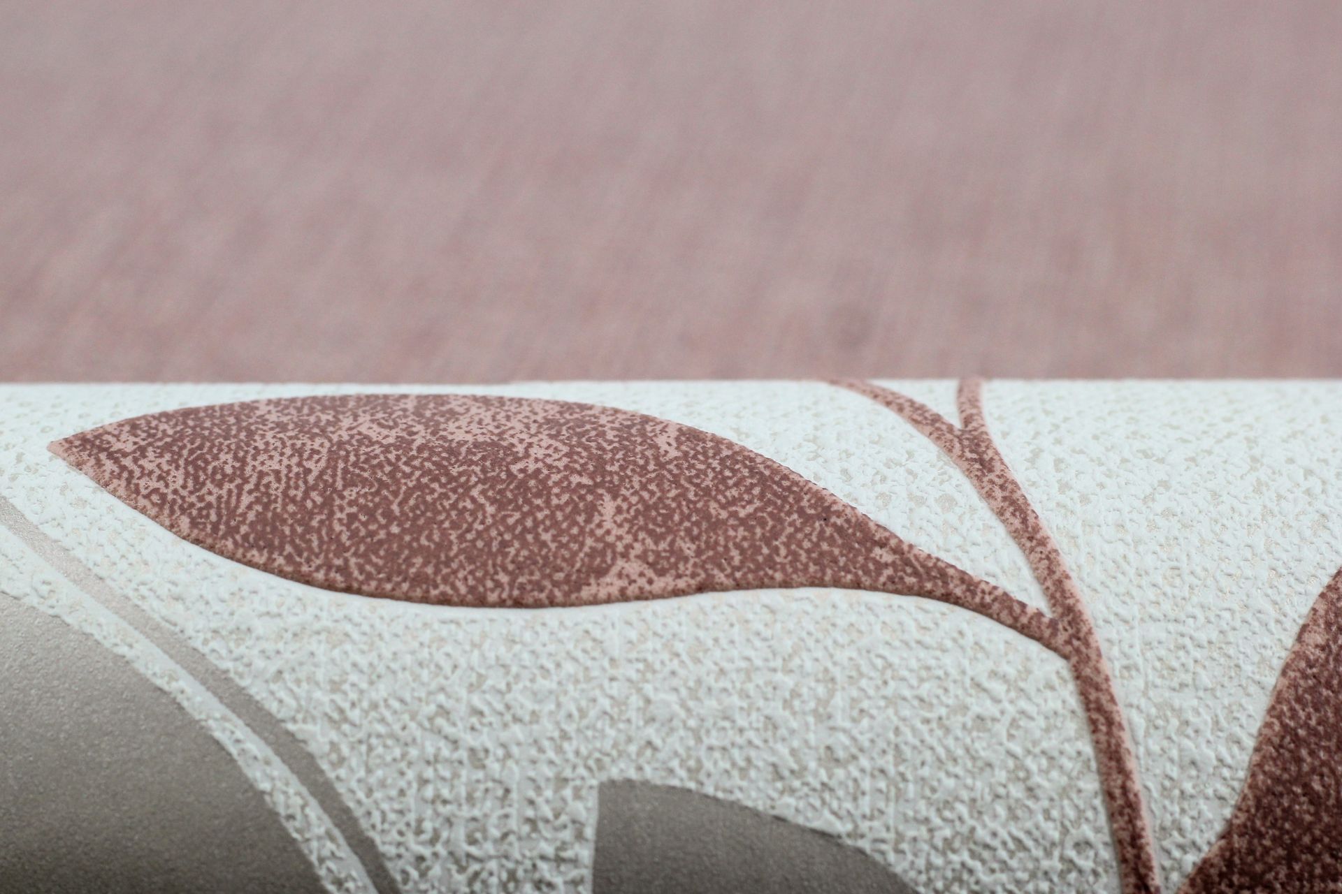 Voller Anmut winden sich die Blätterranken in samtigem Terracotta und schimmerndem Perlmutt grazil vom Boden bis zur Decke über Ihre Wände. Der Hintergrund in Cremeweiß mit leichter Struktur und dezentem Glanz vollendet diese Vliestapete, so dass sie Ihr Zuhause im Handumdrehen elegant und lebendig erscheinen lässt.