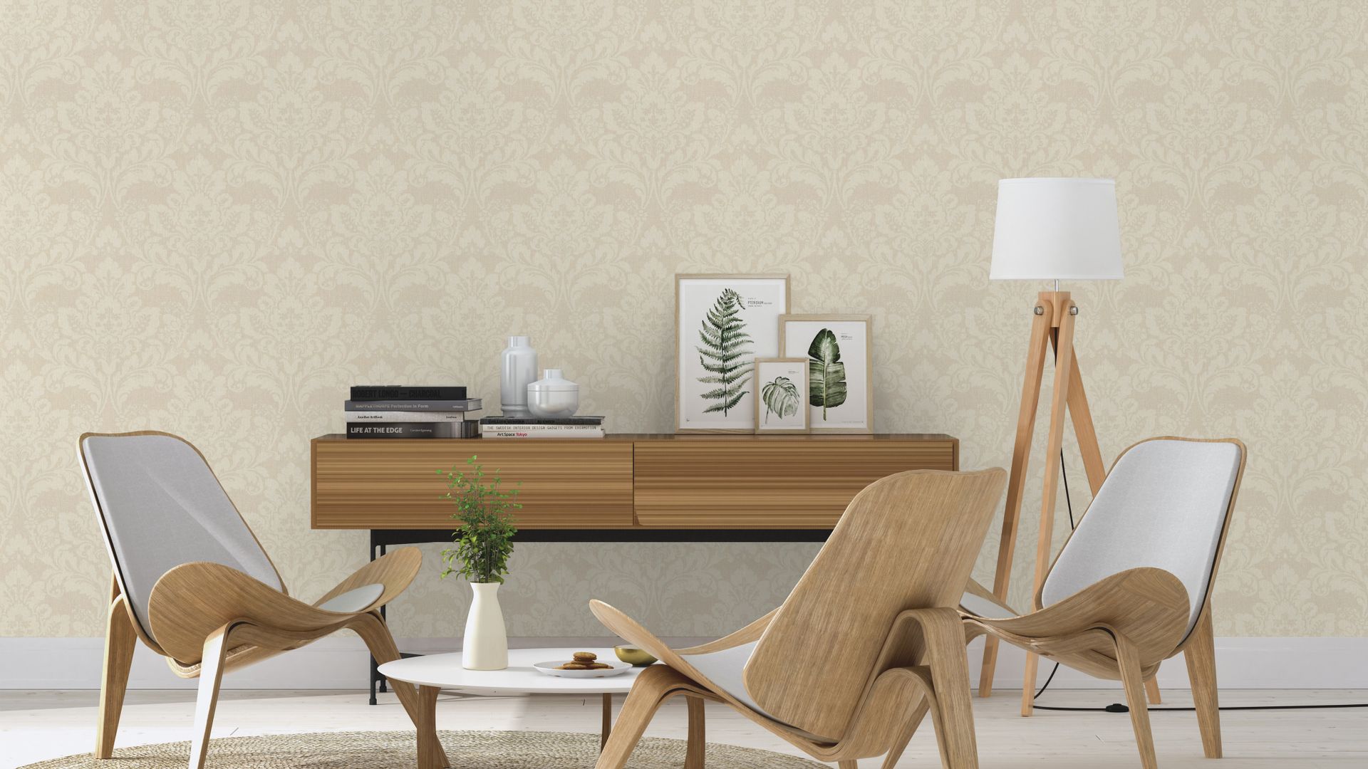 Unsere großformatigen Ornamente möchten heute kein royales Statement an der Wand abgeben. Vielmehr haben sie es sich gemütlich gemacht und lassen lieber ihren wohnlich-floralen Charme spielen. Auf dem textilen Strukturfond gelingt das hervorragend, dazu gibt es eine Farbkomposition in Creme und zartem Beige. Schimmerpartikel dürfen hier und da trotzdem durchblitzen, aber nur vom Allerfeinsten.
