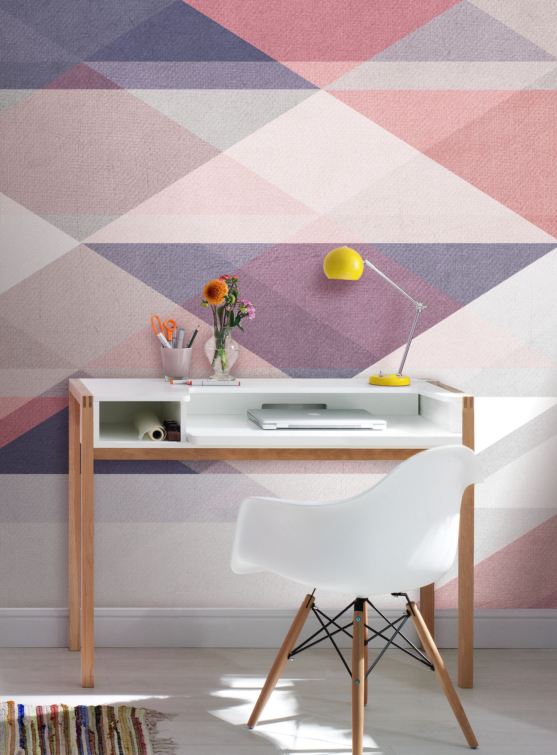 created by Mareike Böhmer: Dreieck für Dreieck setzt sich hier in tollen Violett-, Rot- und Grautönen dieses Kunstwerk für die Wand zusammen, das sich auf einem hochwertigen Vliesdigitaldruck auf 279 x 280 cm ausbreitet. Ein faszinierender Hingucker, der moderne Wohnräume perfekt einkleidet.