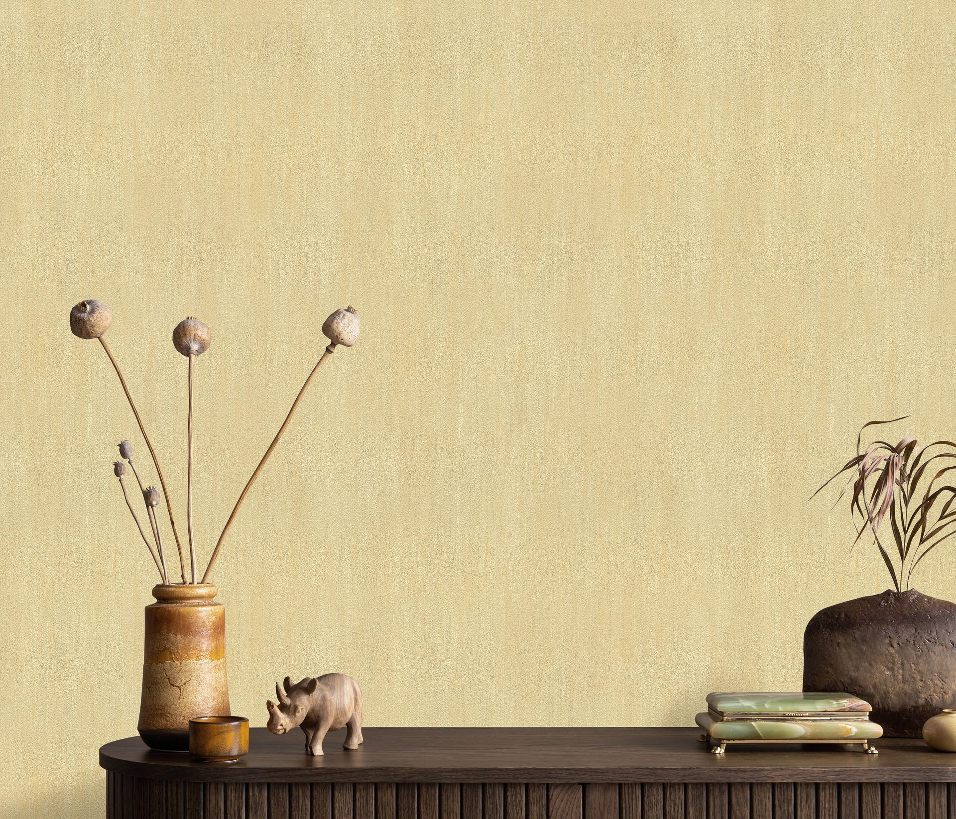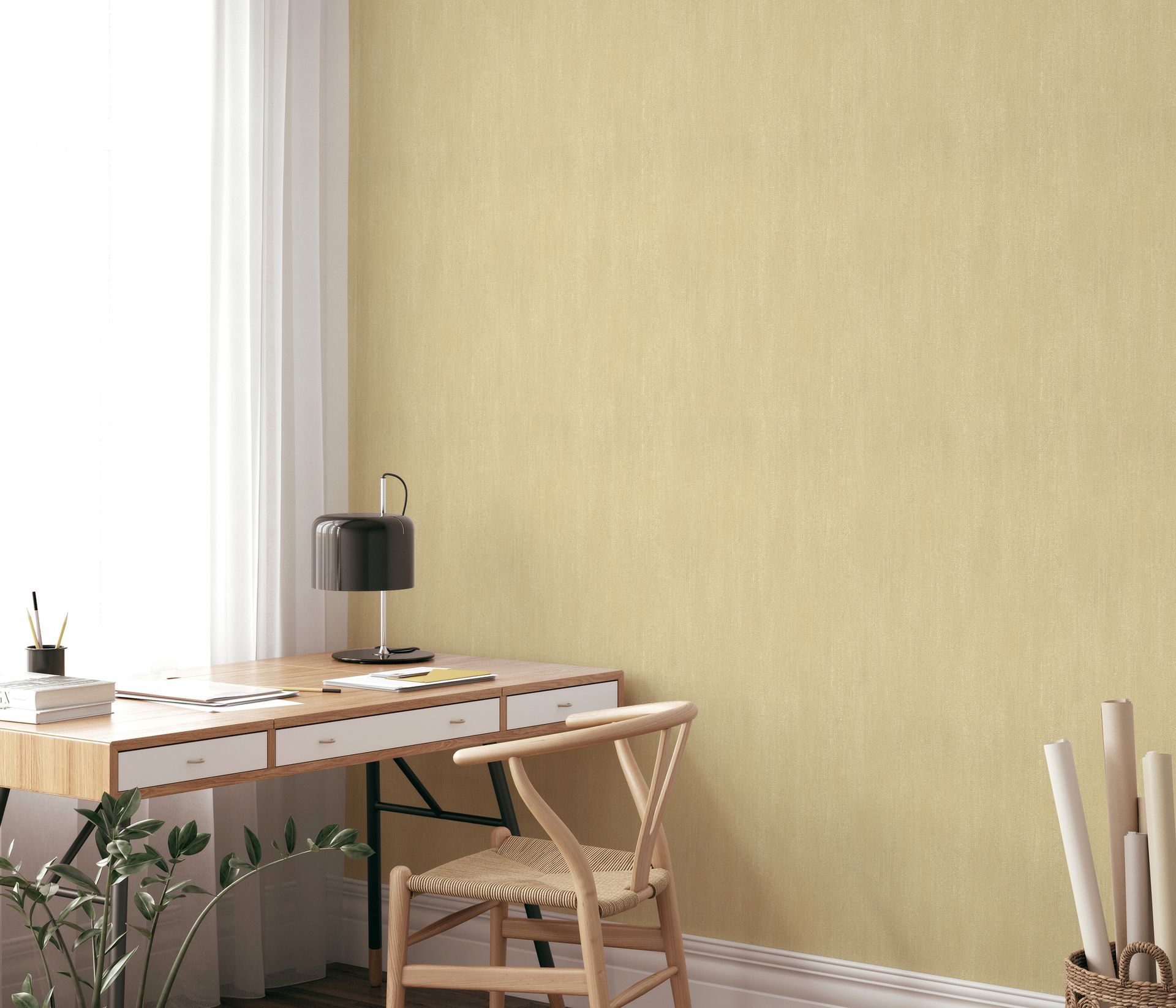 Diese elegante Uni-Tapete aus der Cameo-Kollektion präsentiert sich in einem warmen Champagner-Goldton mit dezenter Putzstruktur. Der feine Metallic-Schimmer verleiht der Oberfläche eine subtile Lebendigkeit, die je nach Lichteinfall sanft changiert und so für eine edle, hochwertige Anmutung sorgt.