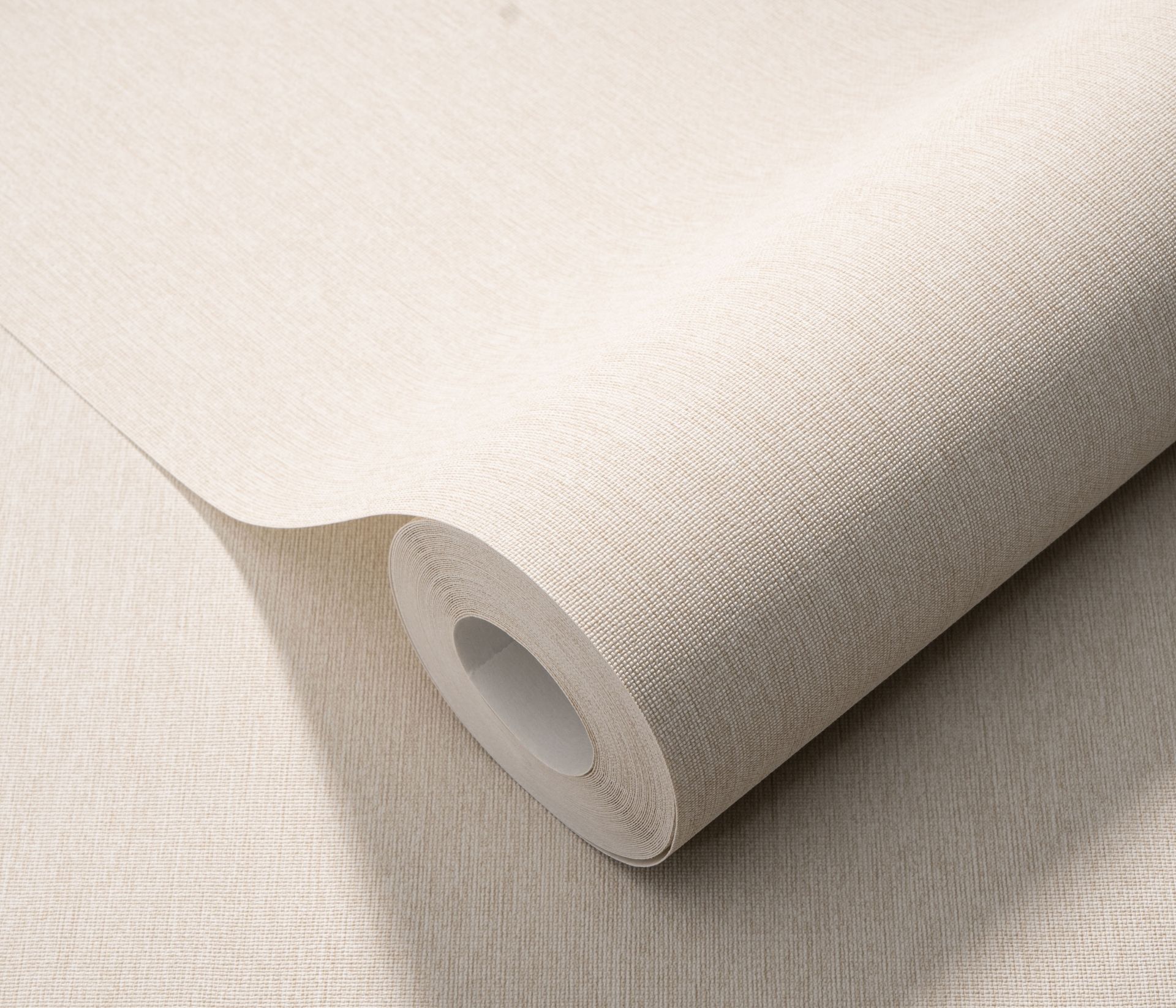 Beige Unitapete in Leinenoptik mit Textilstruktur
