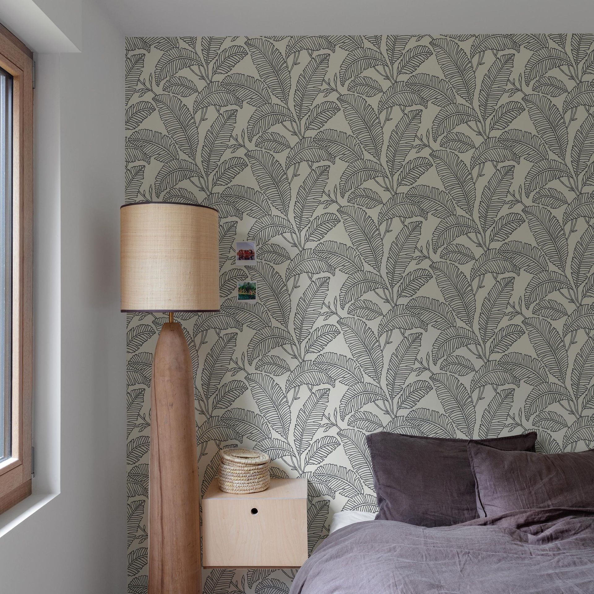 Diese elegante Tapete besticht durch ein fein gezeichnetes Blattmuster, das in klaren Linien auf hellem Beige-Grund dargestellt ist. Die grafische Darstellung großflächiger, geriffelter Blätter verleiht dem Design eine ruhige und dennoch präsente botanische Anmutung. Die Linienführung wirkt präzise und zeitgenössisch, während die naturmotivarischen Elemente eine warme, organische Atmosphäre schaffen.