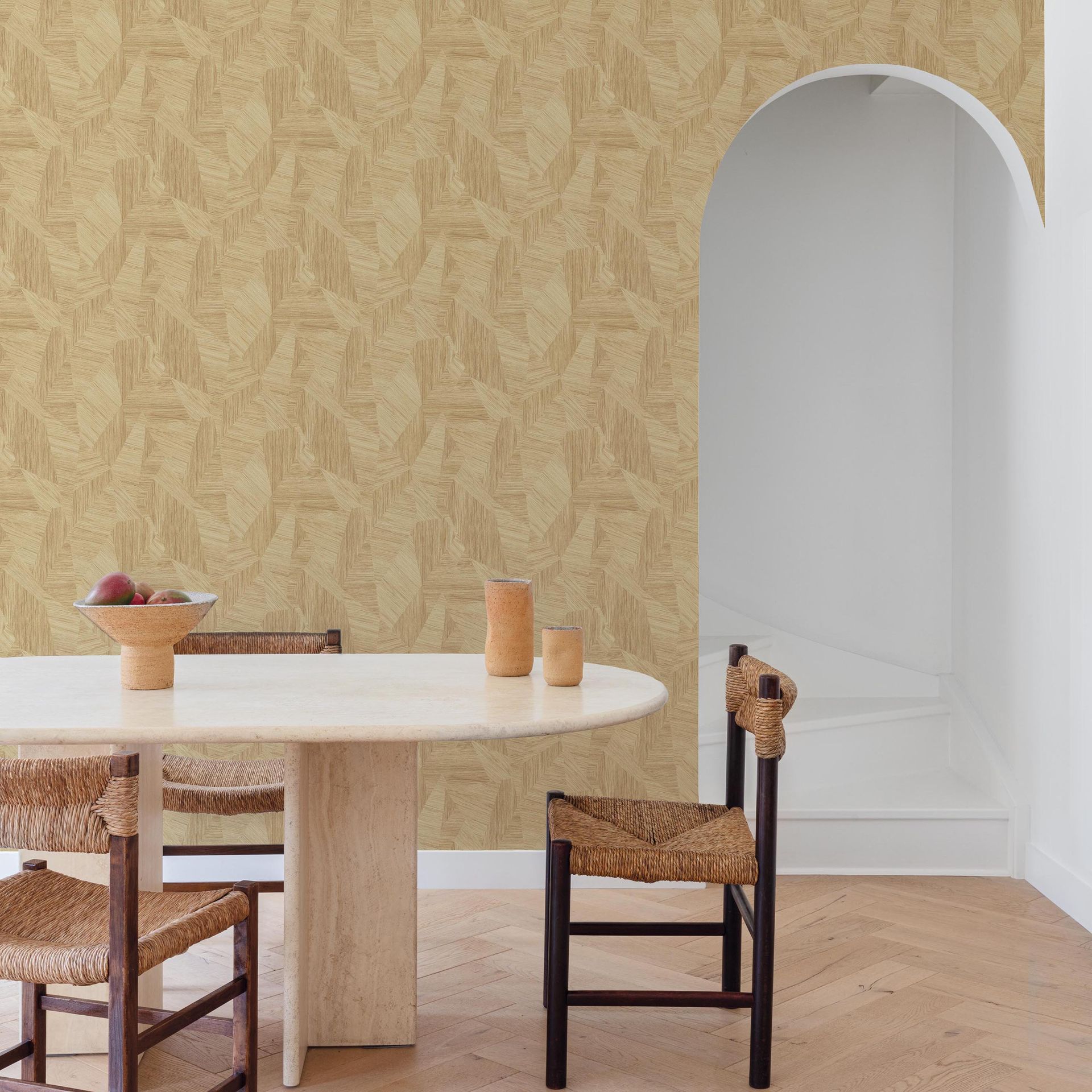 In harmonischen Beige- und Naturtönen schafft diese Tapete eine beruhigende, elegante Raumatmosphäre. Die durchdachte Farbgebung mit variierenden Holztönen wirkt authentisch und hochwertig, ohne dabei übertrieben zu wirken. Sie eignet sich hervorragend als Akzentwand im Wohnzimmer oder Esszimmer, kann aber auch den ganzen Raum prägen – insbesondere in Fluren und Schlafzimmern für eine zusammenhängende, warme Ästhetik.