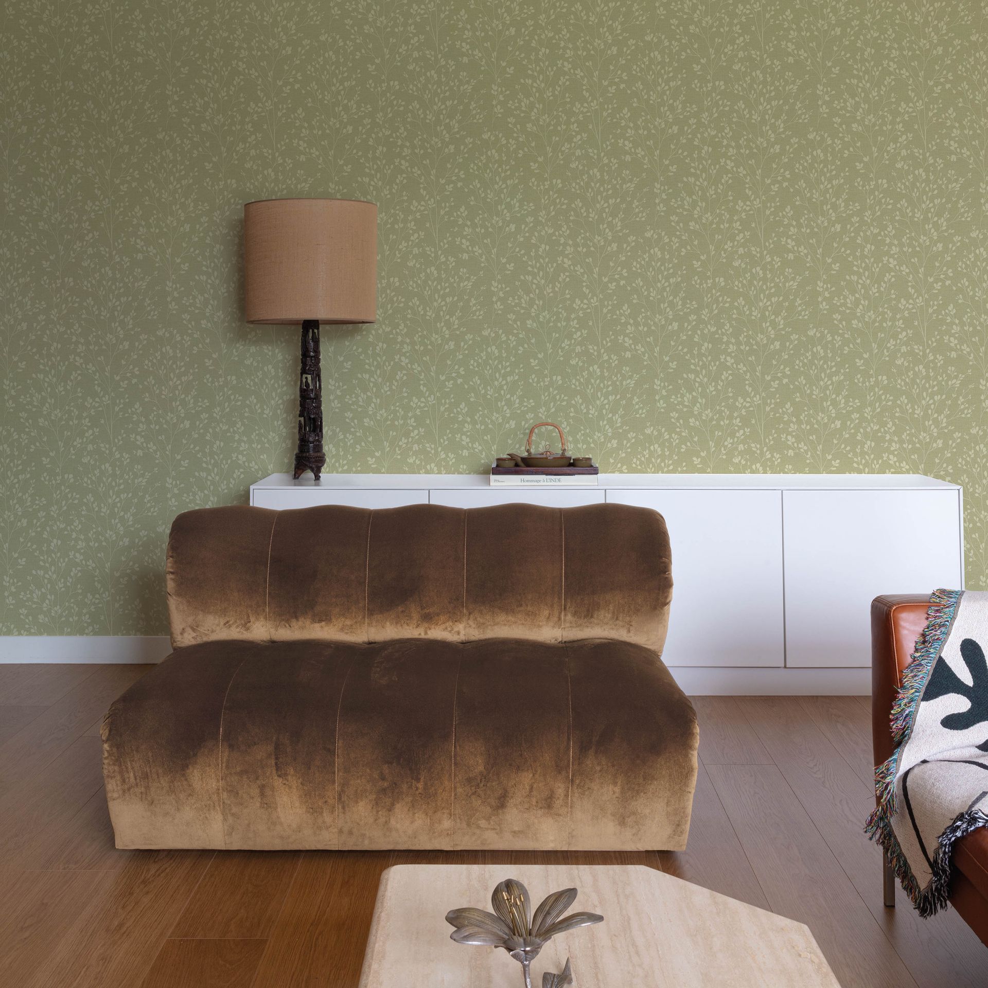 Die monochrome Farbgebung in warmen, gedeckten Tönen erzeugt eine harmonische Raumatmosphäre und eignet sich hervorragend zur vollflächigen Gestaltung. Das feine botanische Motiv fügt sich unauffällig in verschiedene Einrichtungsstile ein und schafft eine subtile, natürliche Eleganz ohne visuelle Überladenheit. Die leinenähnliche Oberflächenstruktur verstärkt den hochwertigen, naturnahen Eindruck.