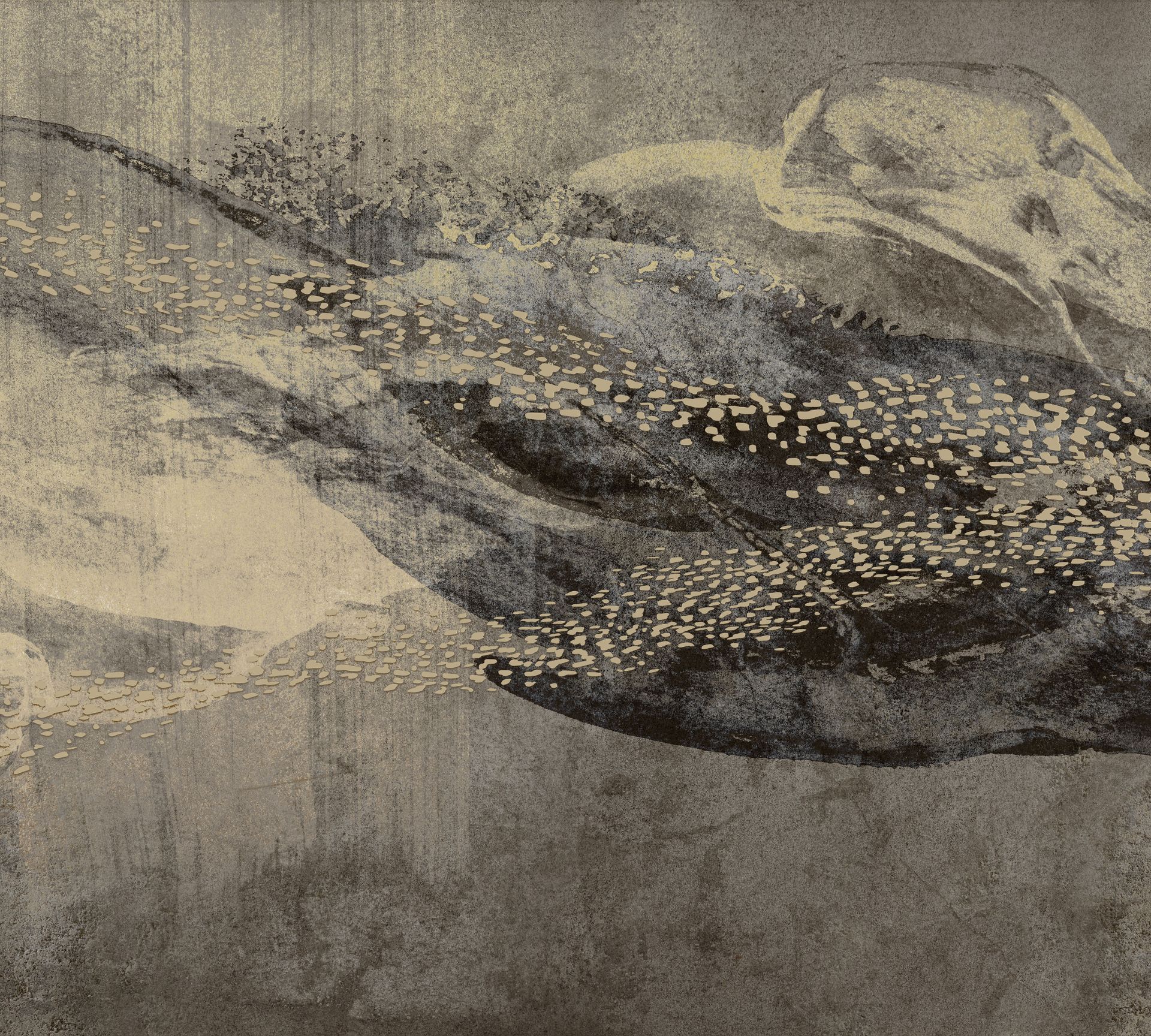 Diese künstlerische Tapete aus der Art Edition von Erismann zeigt abstrahierte Vogelmotive in einer expressiven Malweise. Die Farbpalette aus Grau, Beige und Creme wird durch dezente Gold-Akzente bereichert, während die charakteristische Punktierung der Federn und die aquarellartige Oberflächenanmutung dem Design eine besondere Tiefe verleihen.