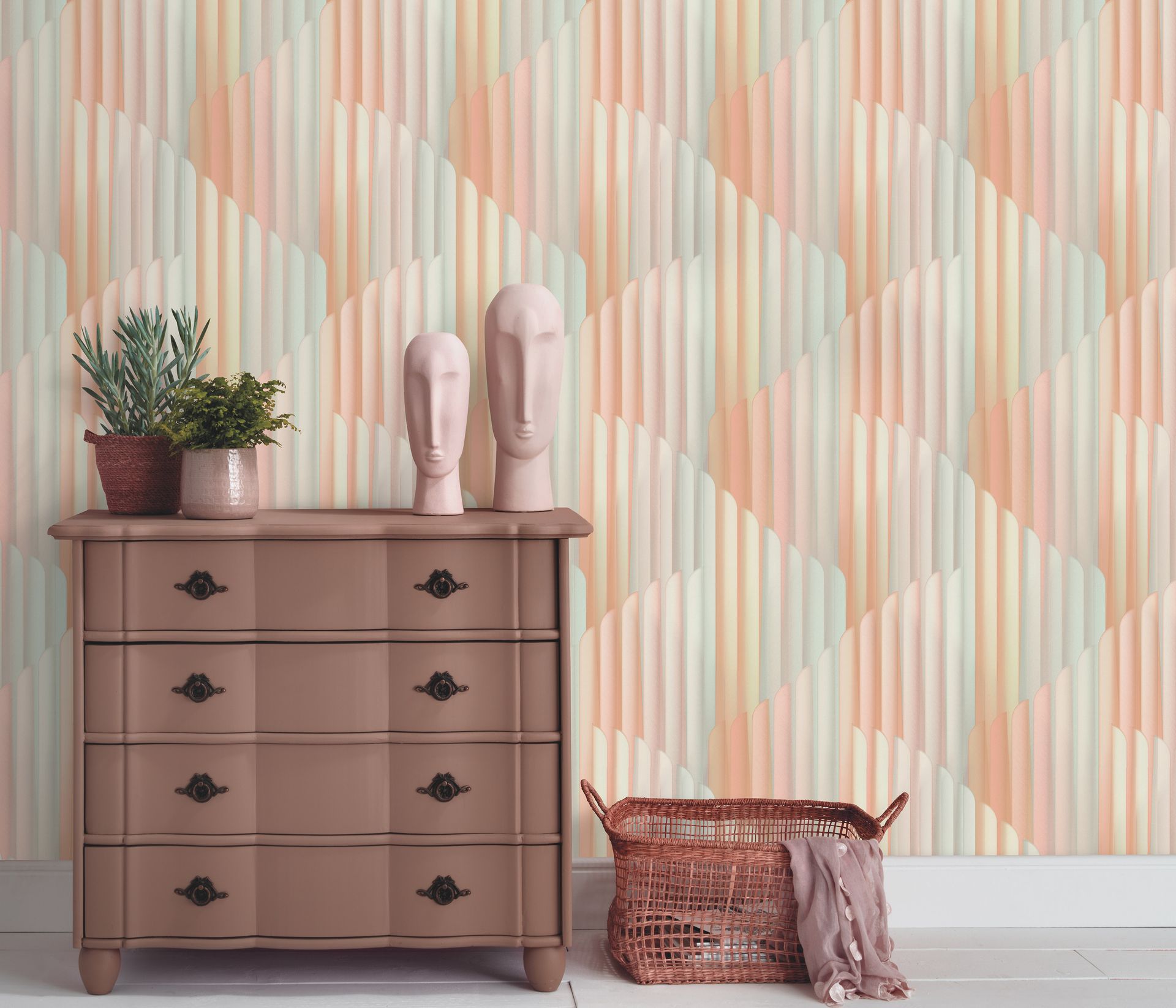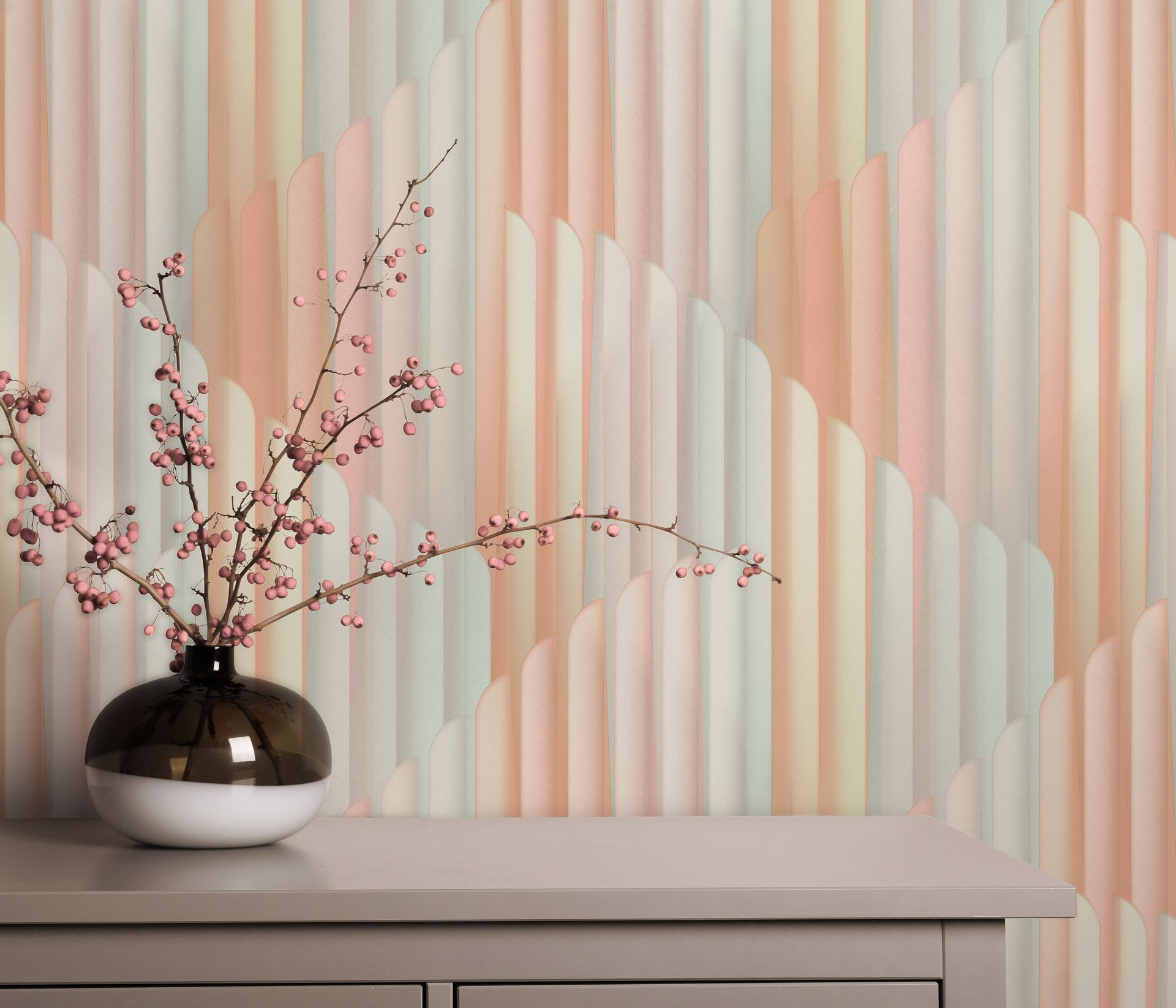 Art-Déco Tapete in Pastellfarben mit Stufenmuster