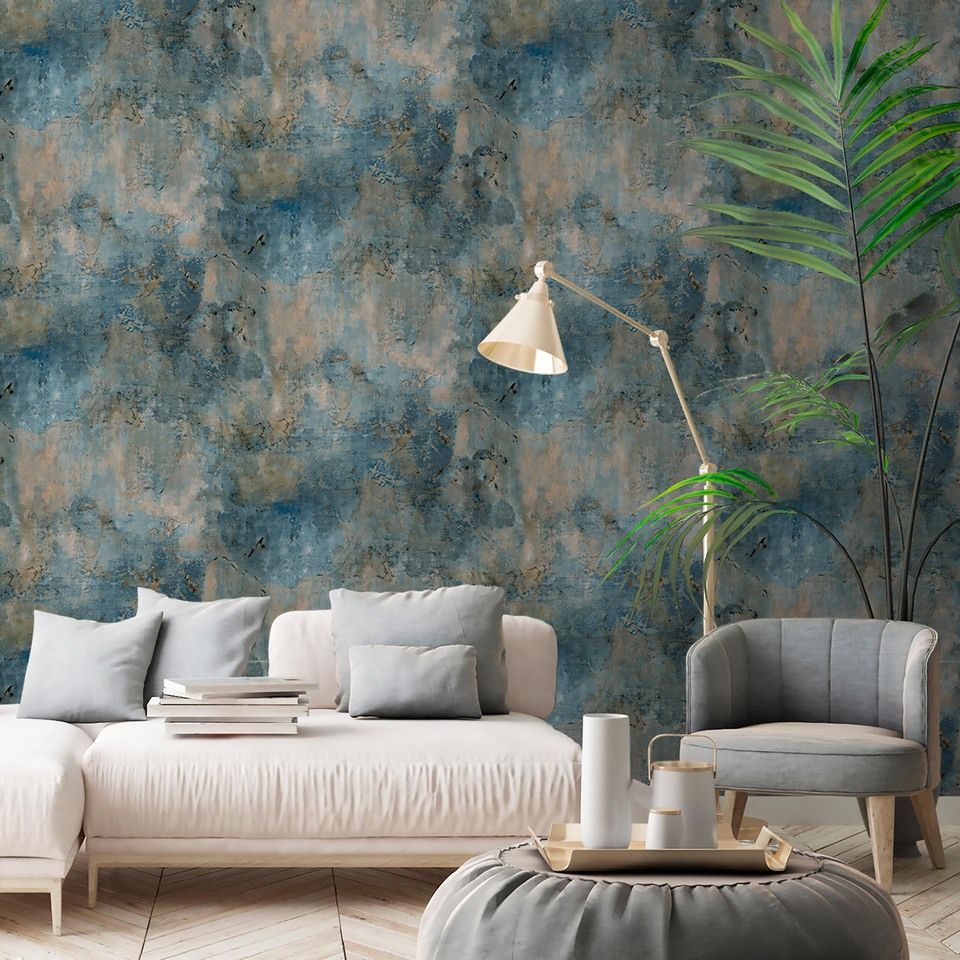 Diese charaktervolle Vintage-Tapete überzeugt durch ihre authentisch verwitterte Oberfläche mit Distress-Effekten. Die Kombination aus Blaugrau und warmem Beige schafft eine zeitlose, nostalgische Atmosphäre, die sowohl traditionelle als auch moderne Wohnräume bereichert. Der Used-Look wirkt natürlich und lebhaft, ohne aufdringlich zu wirken.